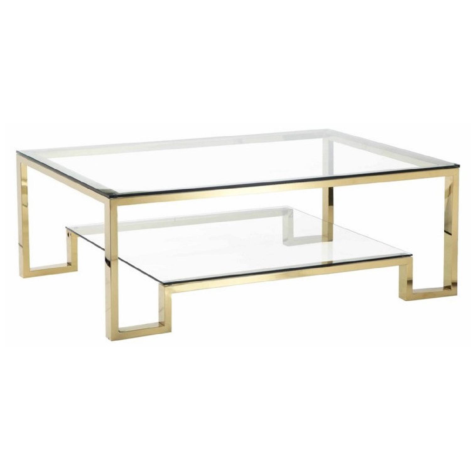 Courtesy of one kings lane. Modern, luxe, and undeniably glamorous: This coffee table is crafted of thick clear glass with an iconic waterfall design. Discover (and save!) your own pins on pinterest 40w x 24.3d x 18.1h. I love how this coffee table mixes black iron legs, a brass top, and raw wood edges for a perfect industrial trio, she shares. This coffee table's greek key motif gives it a timeless appeal. Shop our chic and informative selection here. This brushed stainless steel coffee. Buy on one kings lane. Thank you for showing interest in this item. With its twisting framework and bowed stretcher, this golden coffee table boasts a wonderfully tactile feel. On sale for $314.50 original price $395.00.